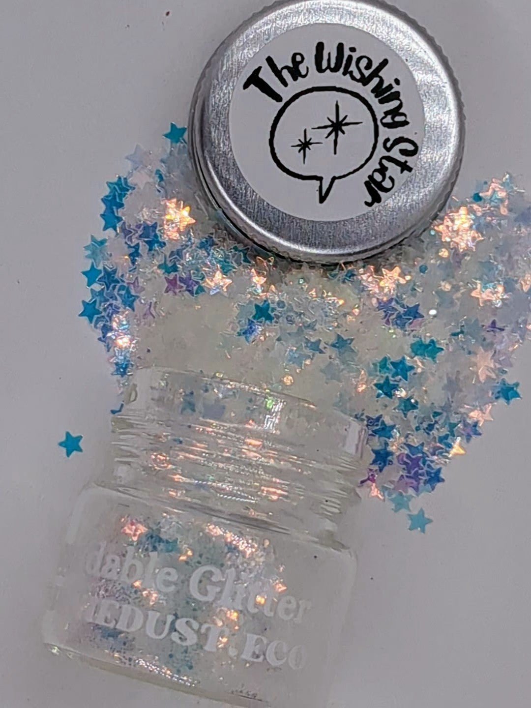 Wishing Stars sprinkles iridescent magic across every surface, delicate twinkling stars that shimmer like moonlight caught in a dream, turning every moment into a fairytale.